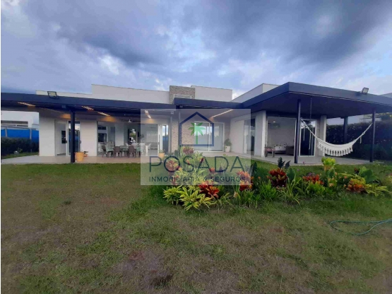 Hermosa casa campestre en Condominio exclusivo, sector Edén, cerca al Club Campestre, vías amplias, portería 24/7. La casa tiene el encanto del paisaje de la montaña y el atardecer desde la terraza, con un terreno generoso para disfrutar dentro de la casa, del verde prado; para independencia se tiene la polisombra azul mientras crece la cerca viva con Eugenias. Desde la habitación principal y la sala comedor amplia, salida a la terraza para hamacas, comedor y disfrutar del atardecer. Bella cocina con isla y mesón grande para disfrutar la preparación de alimentos y espacio bastante amplio para sala y comedor. Consta de 3 alcobas amplias, dos de ellas con baño privado de lujo, la principal con vestier, estudio, baño social, zona de ropas y parqueadero para 4 vehículos, dos cubiertos.
